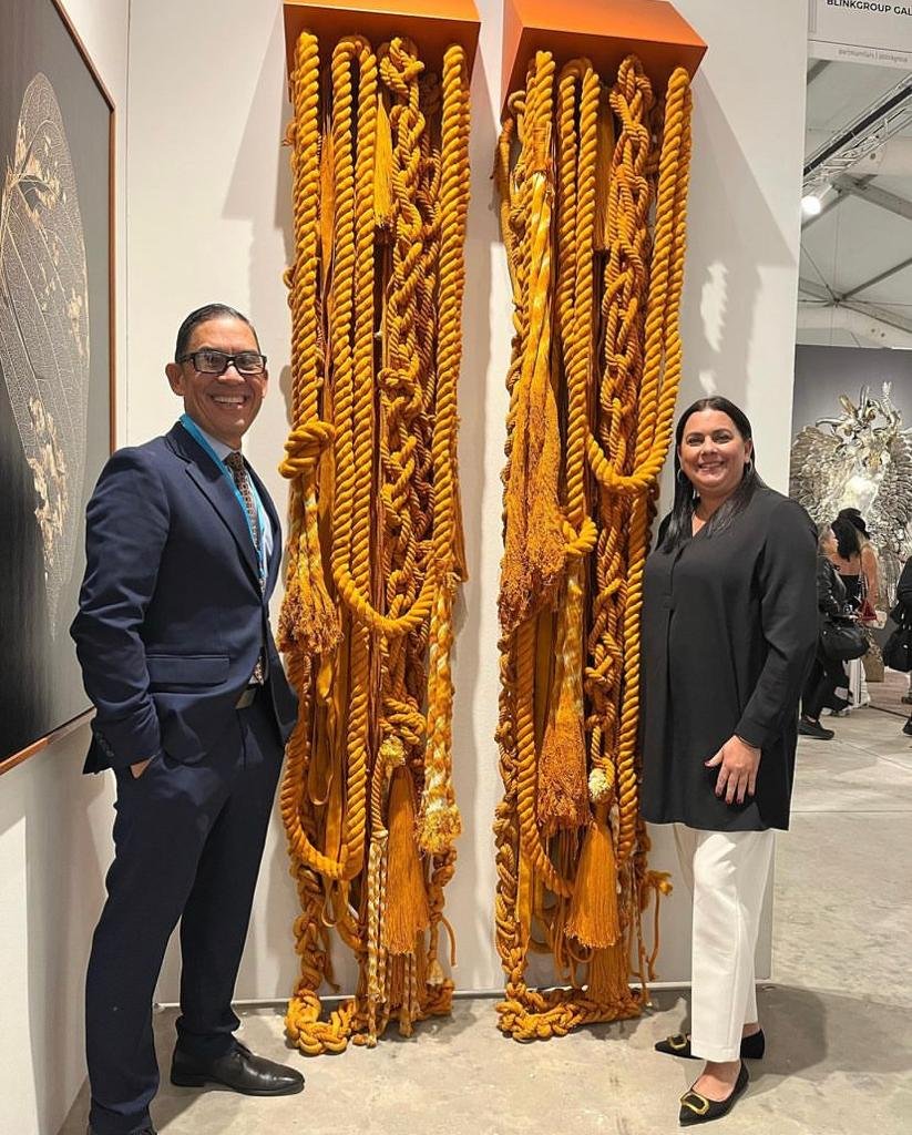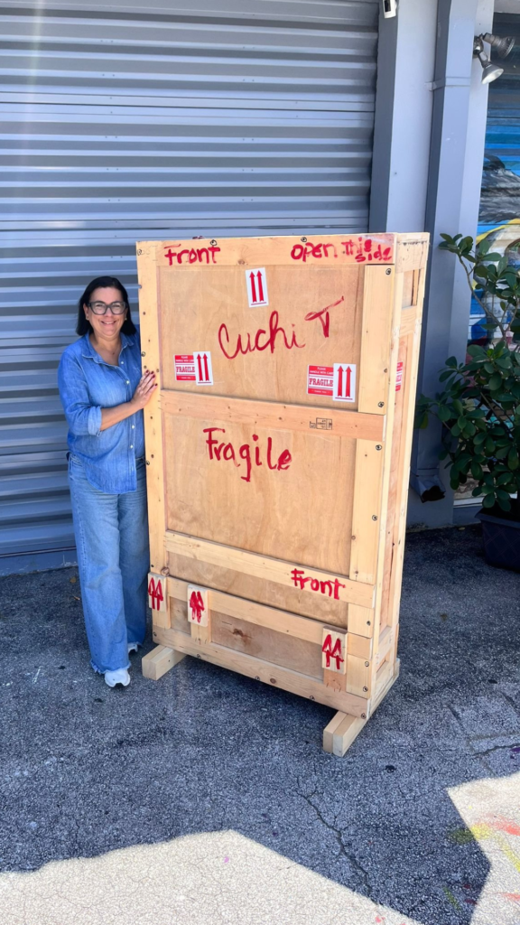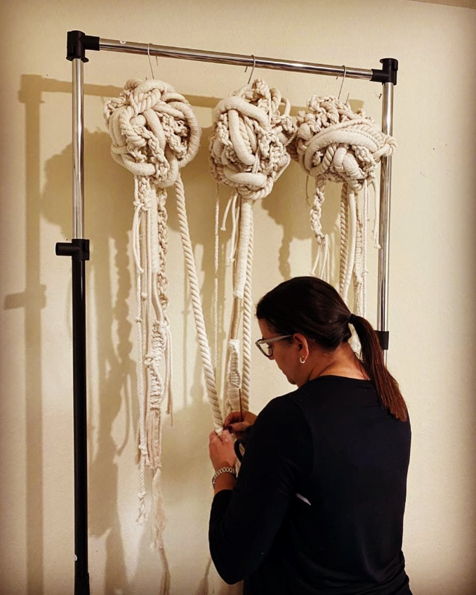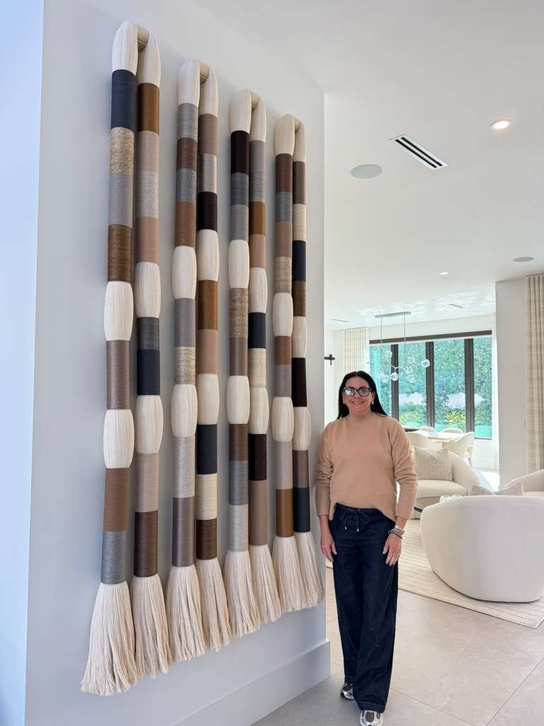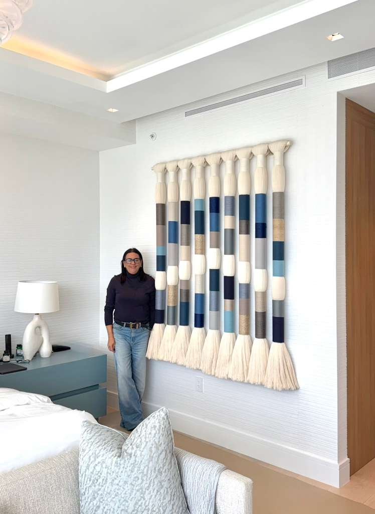 “Cuchi Taborda is a Venezuelan-born textile artist known for her contemporary fiber installations that blend cotton threads, natural fibers, and mixed materials. Her work explores the dialogue between softness and structure, weaving emotions into harmonious, delicate sculptural forms. Each piece is handcrafted in Miami and reflects her lifelong passion for textiles, craftsmanship, and material experimentation.”