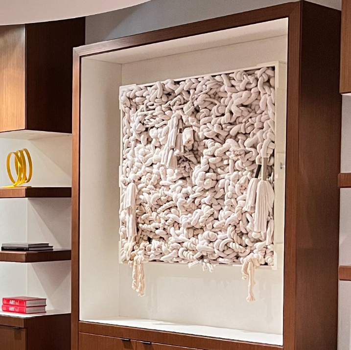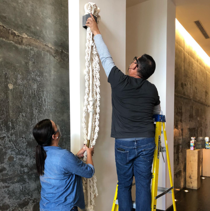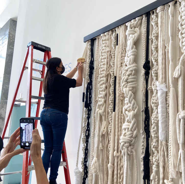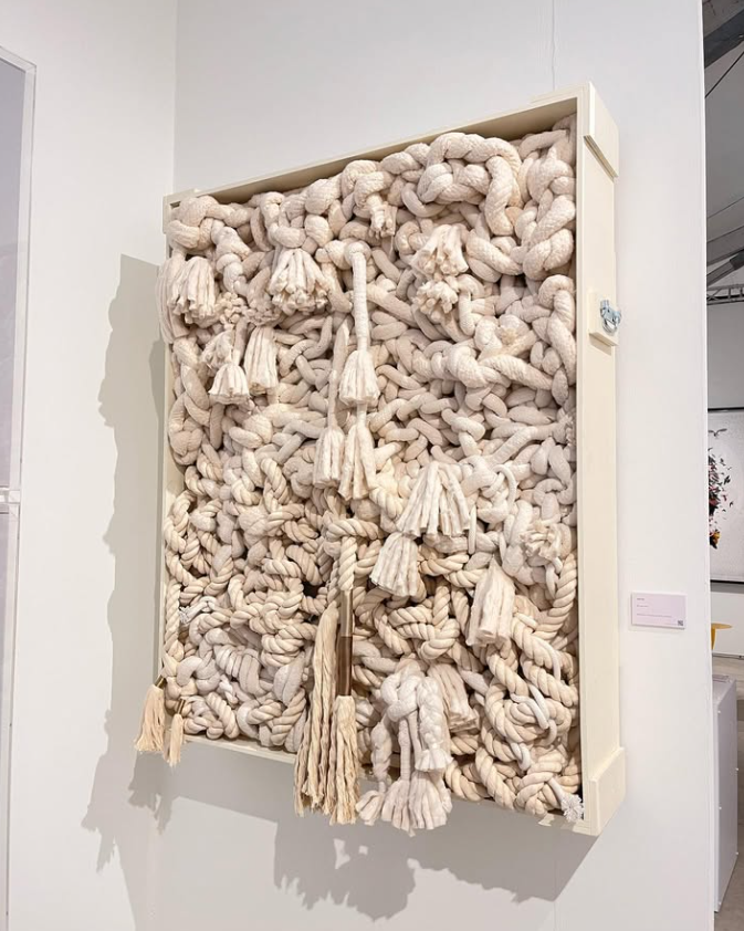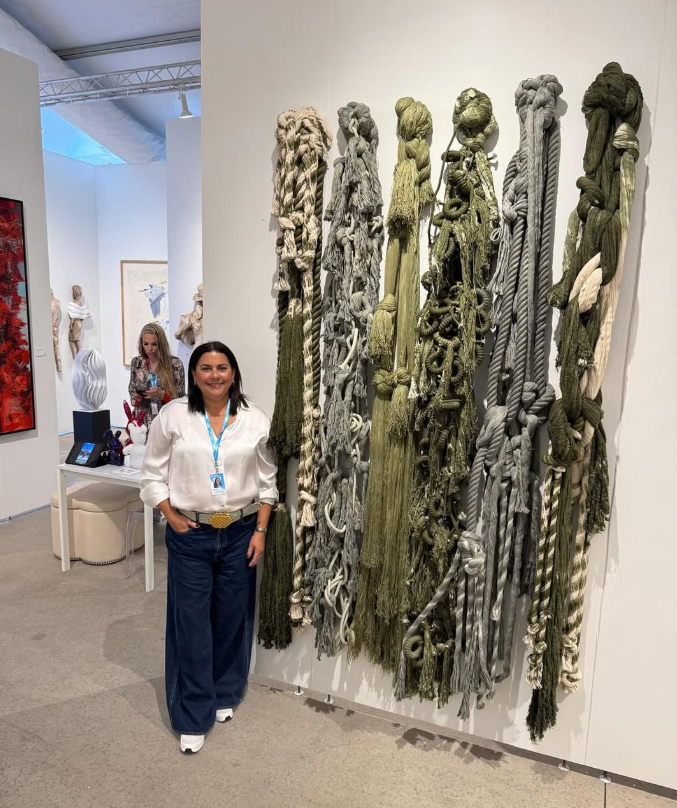 Cuchi Taborda’s work embodies harmony between textiles and metals, reflecting emotions through a delicate interplay of materials in her artistic expression.